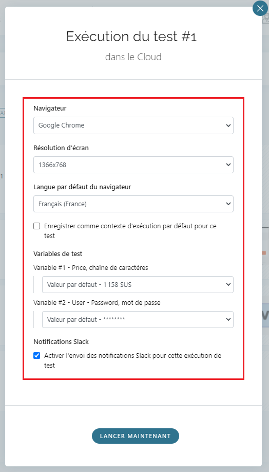 - Le navigateur sur lequel le Scénario de test sera exécuté