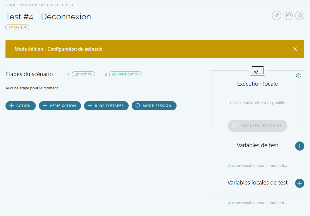 - Ou sur le bouton Modifier le Scénario si le Scénario de test ne contient déjà des Étapes de test :