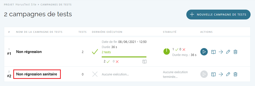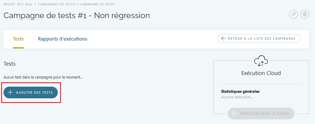 Dans les 2 cas, l'opération s'effectue en rejoignant la page de la Campagne de tests :