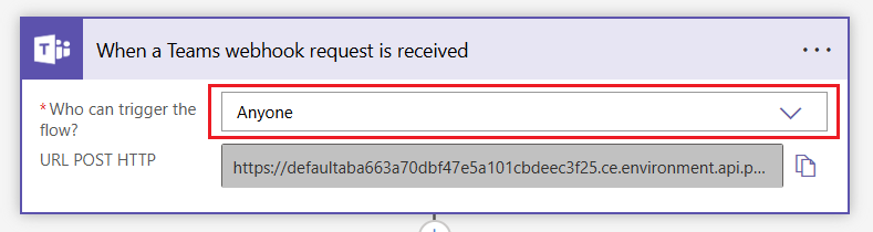 - Le formulaire de configuration du webhook apparaît, sélectionner l'option Anyone dans le champ Who can trigger the flow?