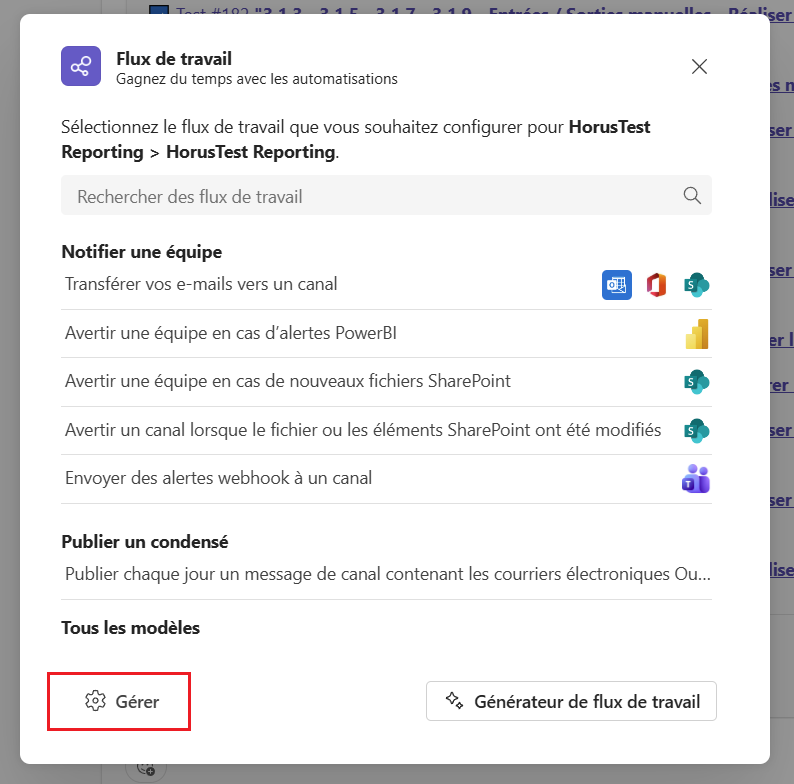 Les Rapports d'exécutions Cloud sont accessibles dans HorusTest Studio mais il est également possible de recevoir des Notifications Microsoft Teams .