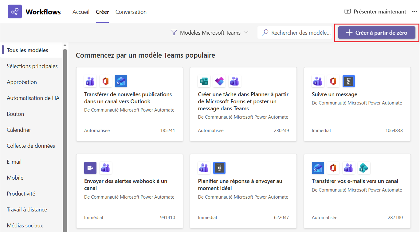 - La page des modèles de Flux de travail apparaît, cliquer sur le bouton Créer à partir de zéro