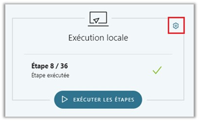 - Ouvrir HorusTest Studio, sur la page d’un Test en Mode édition, dans l’encart d’Exécution locale à droite, cliquer sur la petite roue dentée.