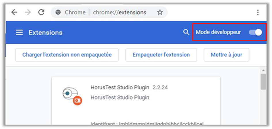 - Activer le Mode développeur dans la page des extensions de Google Chrome en haut à droite