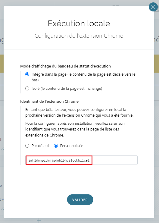 - Si HorusTest Studio parvient à détecter l’extension, un nouveau bandeau rouge « Bêta test » s’affiche dans l’encart d’Exécution locale, cela veut dire que tout va bien !