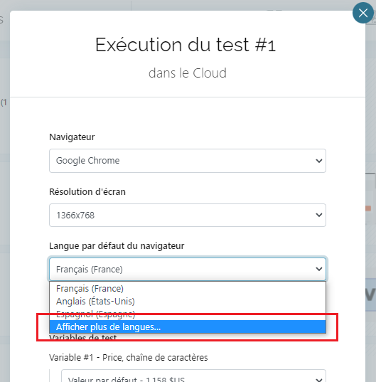 La langue par défaut du navigateur actuellement utilisée lors de l'Exécution locale est celle du navigateur Google Chrome installé localement.