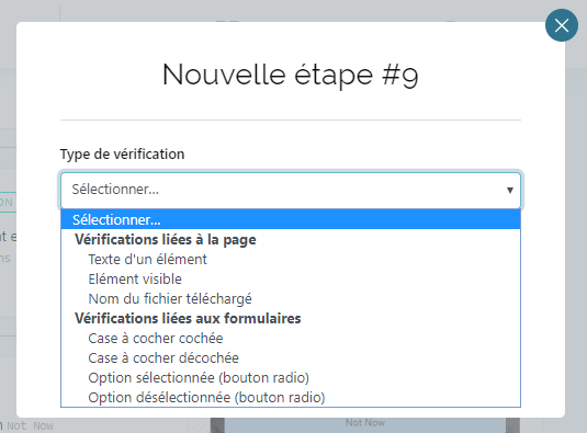 Exemple : formulaire de création d'une Étape de test de type Vérification