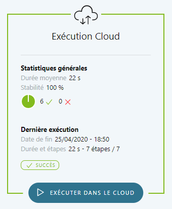 Ils sont accessibles, à tout moment, depuis la liste des Rapports d’exécution Cloud de Test ou de Campagne de tests et ils sonts exploités pour consolider les statistiques d’Exécution Cloud.