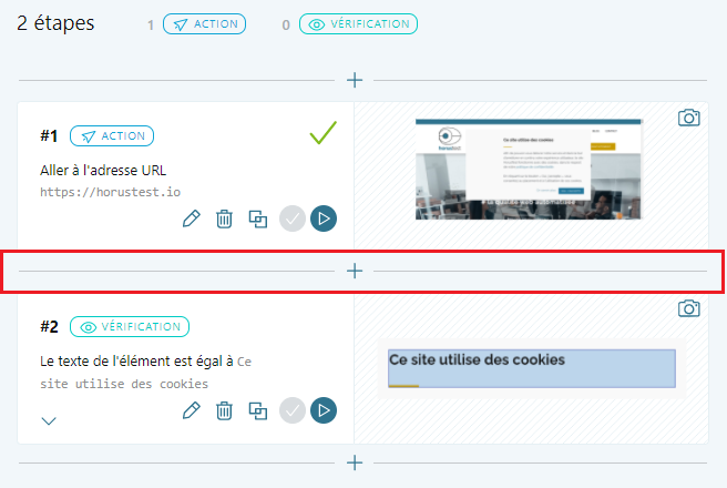 La nouvelle étape apparaît alors dans la liste des étapes du Scénario de test.