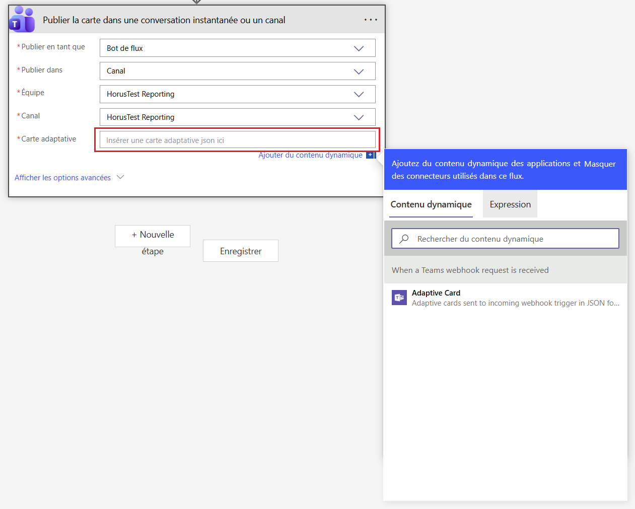 - Cliquer sur le bouton Enregistrer pour finaliser la configuration de l'étape