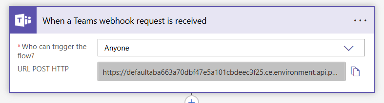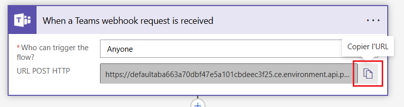 - Le formulaire de configuration du webhook apparaît, sélectionner l'option Anyone dans le champ Who can trigger the flow?