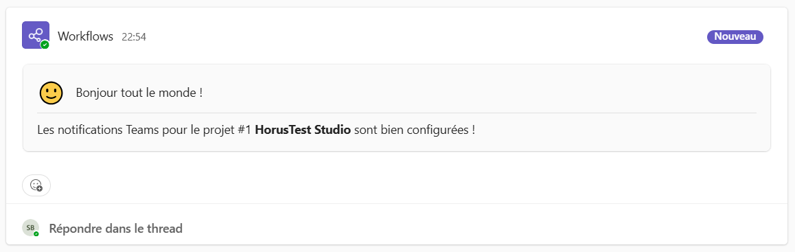 Les Rapports d'exécutions Cloud sont accessibles dans HorusTest Studio mais il est également possible de recevoir des Notifications Microsoft Teams .