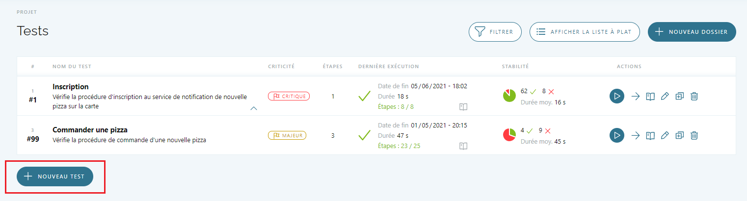 - Cliquer sur le bouton Nouveau Test présent en fin de liste des Tests :