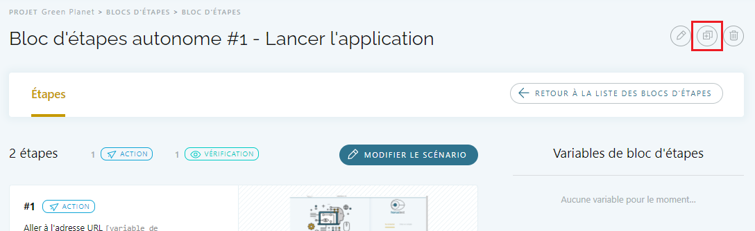 Dupliquer un Bloc d'étapes a pour objectif de copier l'intégralité d'un Bloc d'étapes dans un nouveau Bloc d'étapes, ce qui comprend :