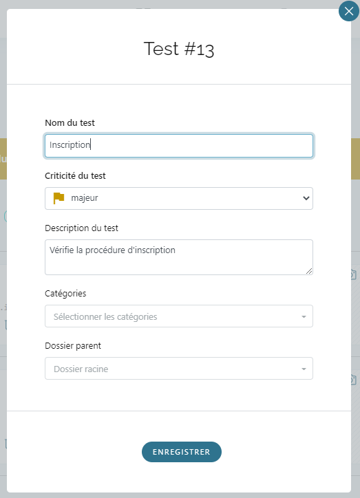 La modification des propriétés d'un Test peut être effectuée depuis la page du Test.